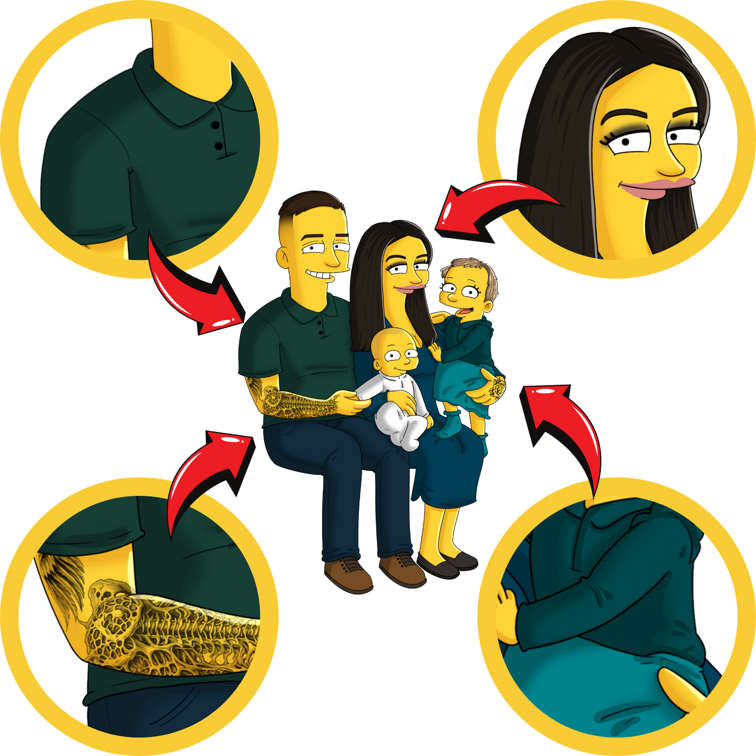 Víme, že dokonalost se skrývá v detailech. Na ty se specializujeme. Na kresbě jako ze Simpsonů se vždy poznáte, vždy budete mít veselý výraz, krásné vlasy, syté barvy, elegantní stínování a přirozenější pozice.